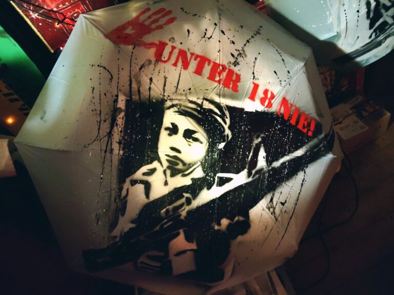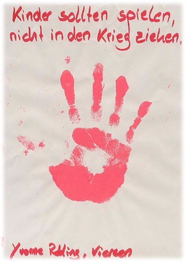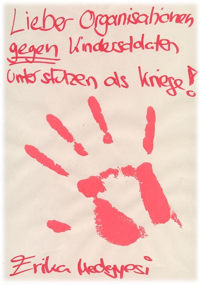 Ich setze mich für die (weiblichen) Kindersoldaten ein mit dem Slogan: Kinderhände dürfen dreckig werden, aber lasst sie rein bleiben“