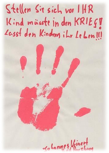 Ich als zukünftige Sozialassistentin fordere das Kinder in die Schule sollen und nicht in den Krieg.