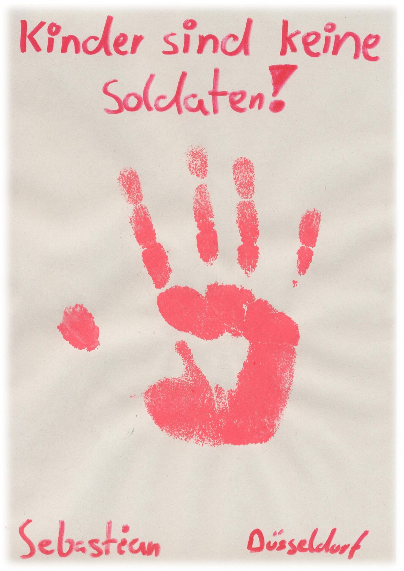 anlässlich des diesjährigen Red hand days am 12. Februar 2021 übersenden wir Euch unseren bescheidenen Beitrag mit einer Fotocollage. Wir wünschen der Aktion einen großen Erfolg mit vielen Teilnehmer*Innen. Die Bundesregierung fordern wir auf, die UN Kinderrechtskonvention als Maßstab ihres Handelns zu nehmen die Kinderrechte in Deutschland ernst zu nehmen und künftig auf die Rekrutierung von Minderjährigen für die Bundeswehr zu verzichten.